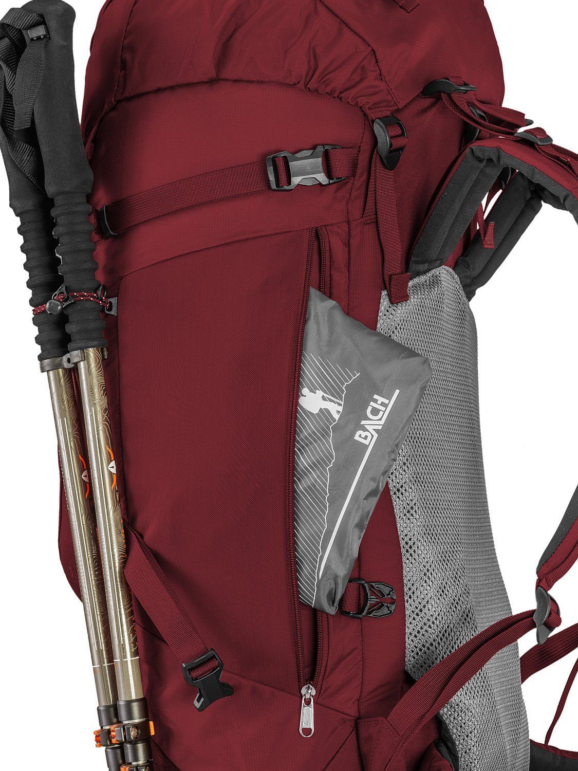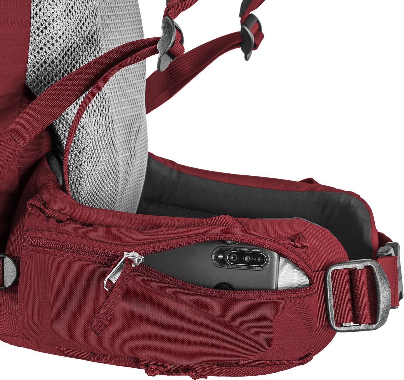 Два эластичных боковых кармана (открытых и на молнии) и передний карман из прочной сетки Power Mesh