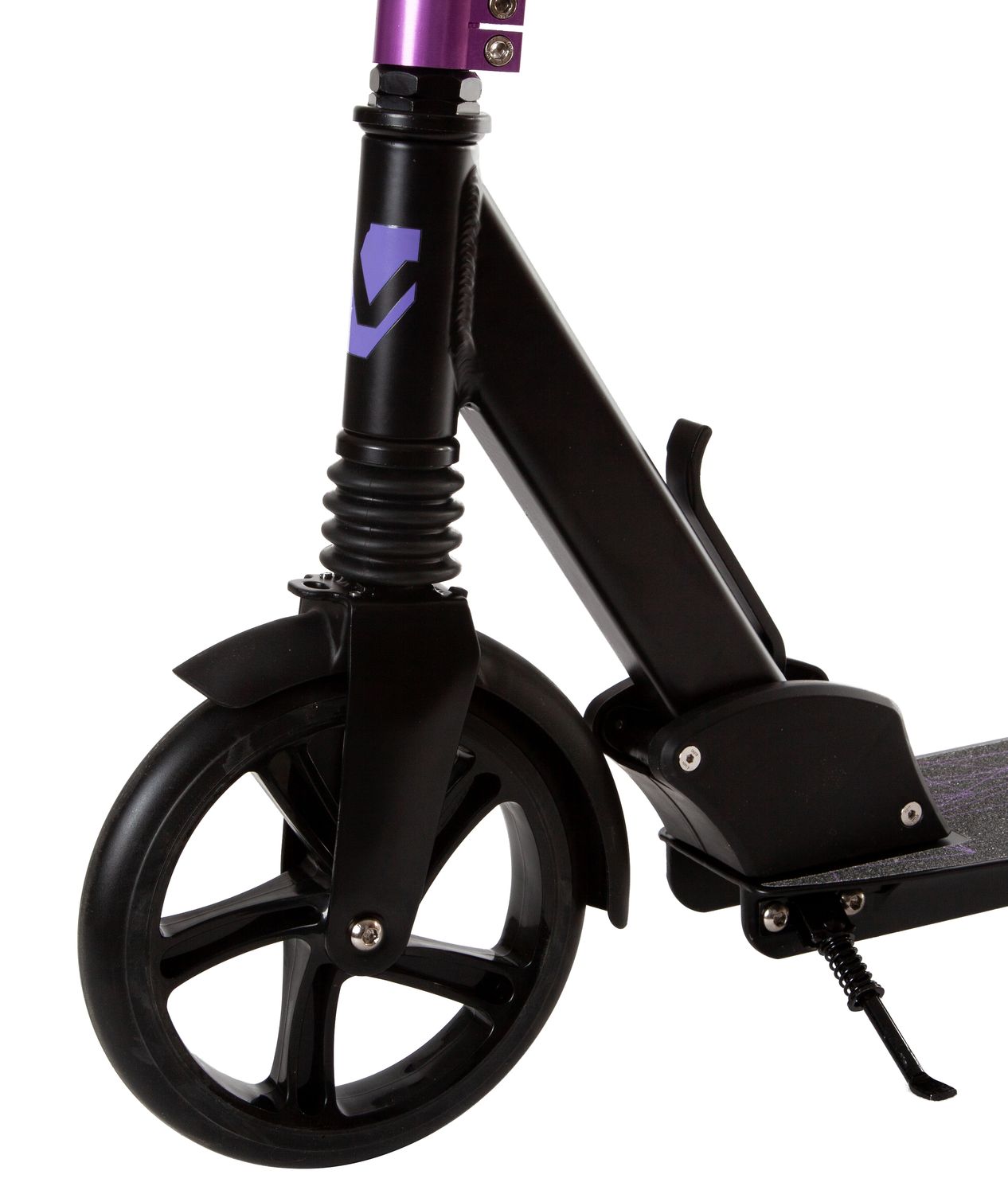 - Надёжные детали: Стальная вилка, небольшая подножка и подшипники закрытого типа класса ABEC-7 гарантируют долговечность и плавность хода.