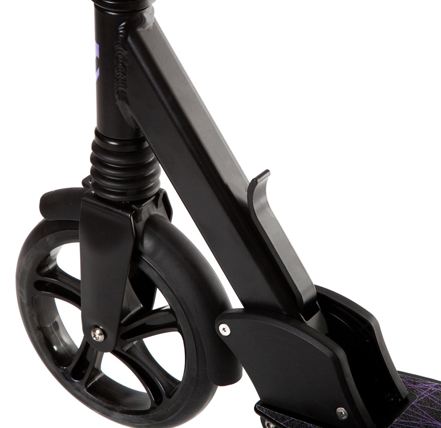 - Большие колёса: Полиуретановые колёса диаметром 200 мм обеспечивают отличный накат и позволяют легко преодолевать неровности, даря уверенность на любых покрытиях.