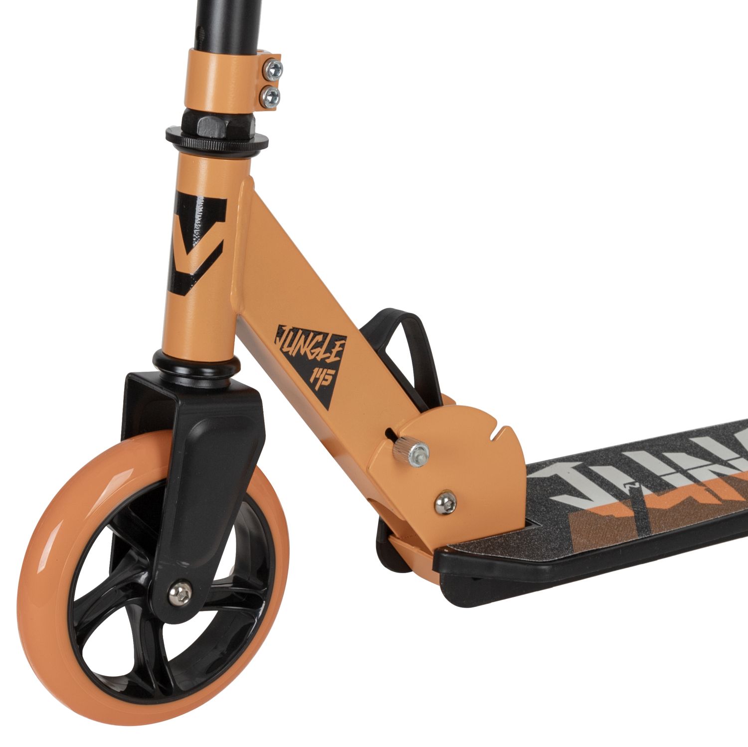 Novatrack Jungle 145P 2019 яркий и быстрый транспорт для детей и подростков. Надежная складная рама самоката способна выдержать ездока весом до 50 кг. Модель предназначена для активного катания по асфальту для этого его оснастили износостойкими полиуретановыми колесами и высококачественными подшипниками, обеспечивающими идеальный разгон. Дека самоката покрыта нескользящей поверхностью - можно быть уверенным, что подошва не соскользнет с площадки во время активного катания.