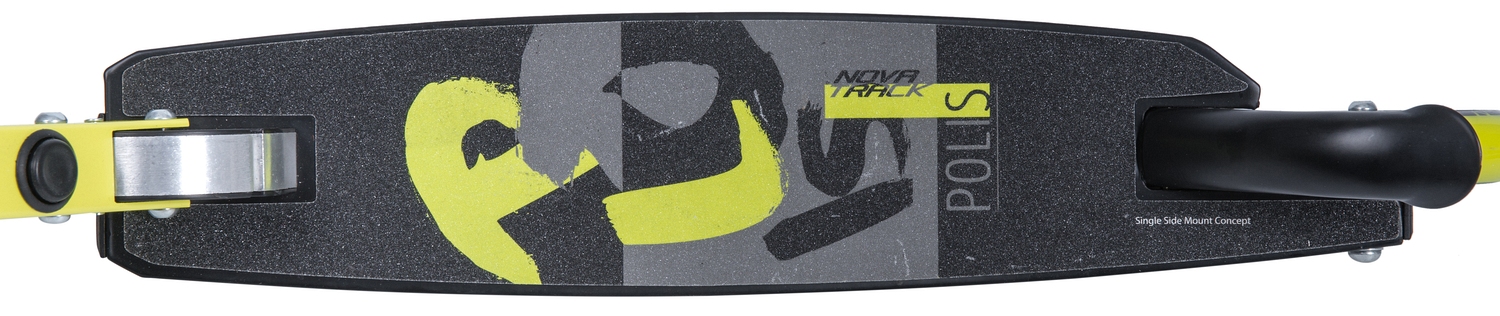Novatrack Polis 180 2019 - алюминиевый самокат, оборудованный удобным механизмом складывания с помощью одной кнопки и износостойкими полиуретановыми колесами 200 мм. Широкая асимметричная платформа с концепцией одностороннего крепления заднего колеса и противоскользящим покрытием позволит удобно и безопасно разместиться как ребенку, так и взрослому весом до 100 кг. Регулируемый по высоте эргономичный Т-образный руль обеспечит комфортный хват.