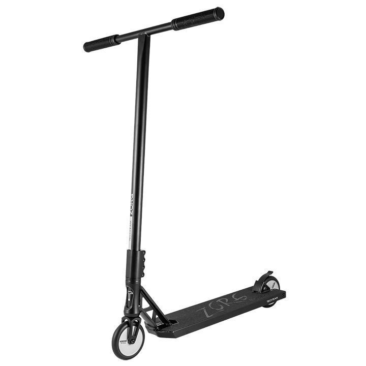 В самокате Zorg есть все, что так любят поклонники стритового стиля катания! Алюминиевая дека самоката дает больше пространства для ног, нежели у аналогичных моделей. Впервые в моделях TT использован Fender - жесткий элемент, предохраняющий заднее колесо от случайного торможения во время исполнения трюковых элементов. В этой модели он выполнен двусторонним - он расположен и снизу, тут его функция заключается в защите колеса, особенно актуальной при выполнении скольжений. Фрезерованная вилка из алюминия с помощью SCS-компрессии наиболее надежной с четырехболтовым зажимом на болтах-шестерках соединяется с высоким рулем из хромолевой стали. Колеса на алюминиевых дисках жесткостью 88A, диаметром 120 мм выполнены из высококачественного полиуретана. Самокат отлично подойдет начинающим райдерам, добившимся уже определенных успехов в катании ростом от 175 до 190 см. Вес самоката 4,5кг.