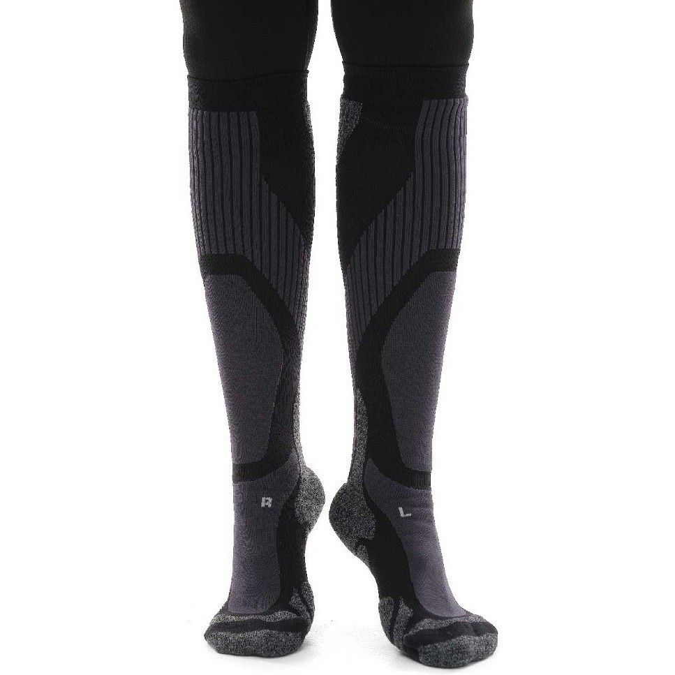 Эргономичная посадка носка комфортно облегает ногу и поддерживает свод стопы, снижая нагрузку на мышцы и улучшая кровообращение. Плетение повышенной плотности в области пальцев отвечает за дополнительную защиту, а удобная резинка надежно фиксируется, не пережимая голень.