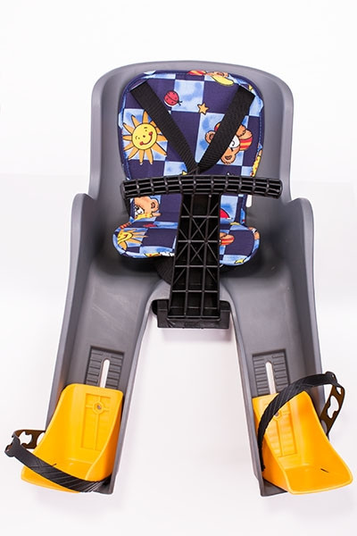 Быстросъемное детское велосипедное кресло с креплением перед седлом на верхнюю трубу велосипедной рамы. Ремни безопасности и съемный матрас в комплекте. Максимальный вес ребенка не более 12 кг.