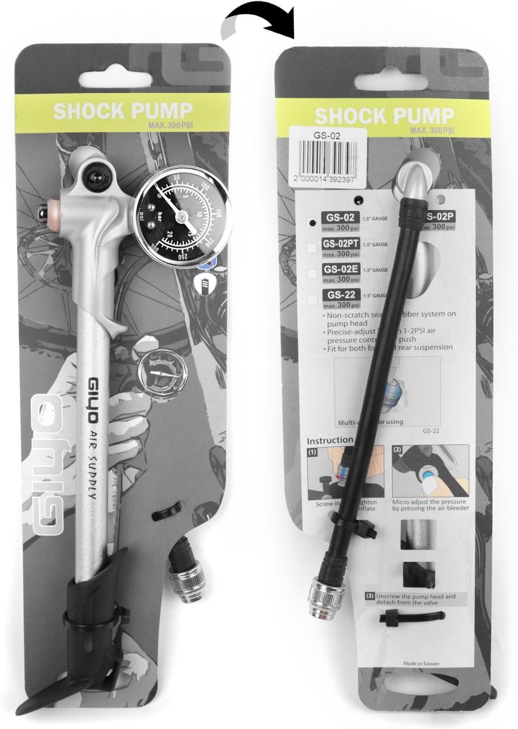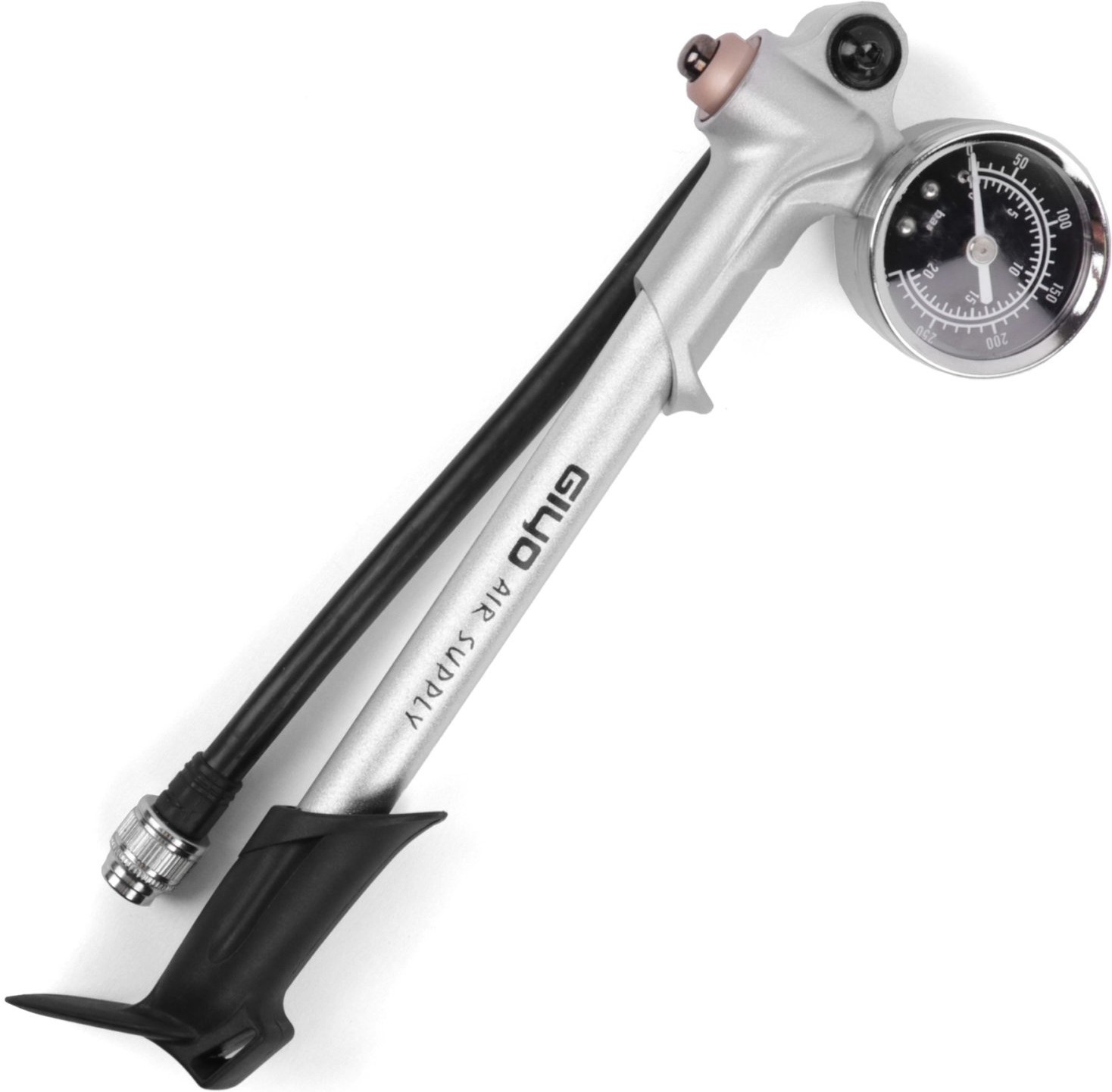 Насос для амортизационной вилки GIYO GS-02D, с манометром, алюминиевый, до 21бар/300psi, складной шланг, 6-190025