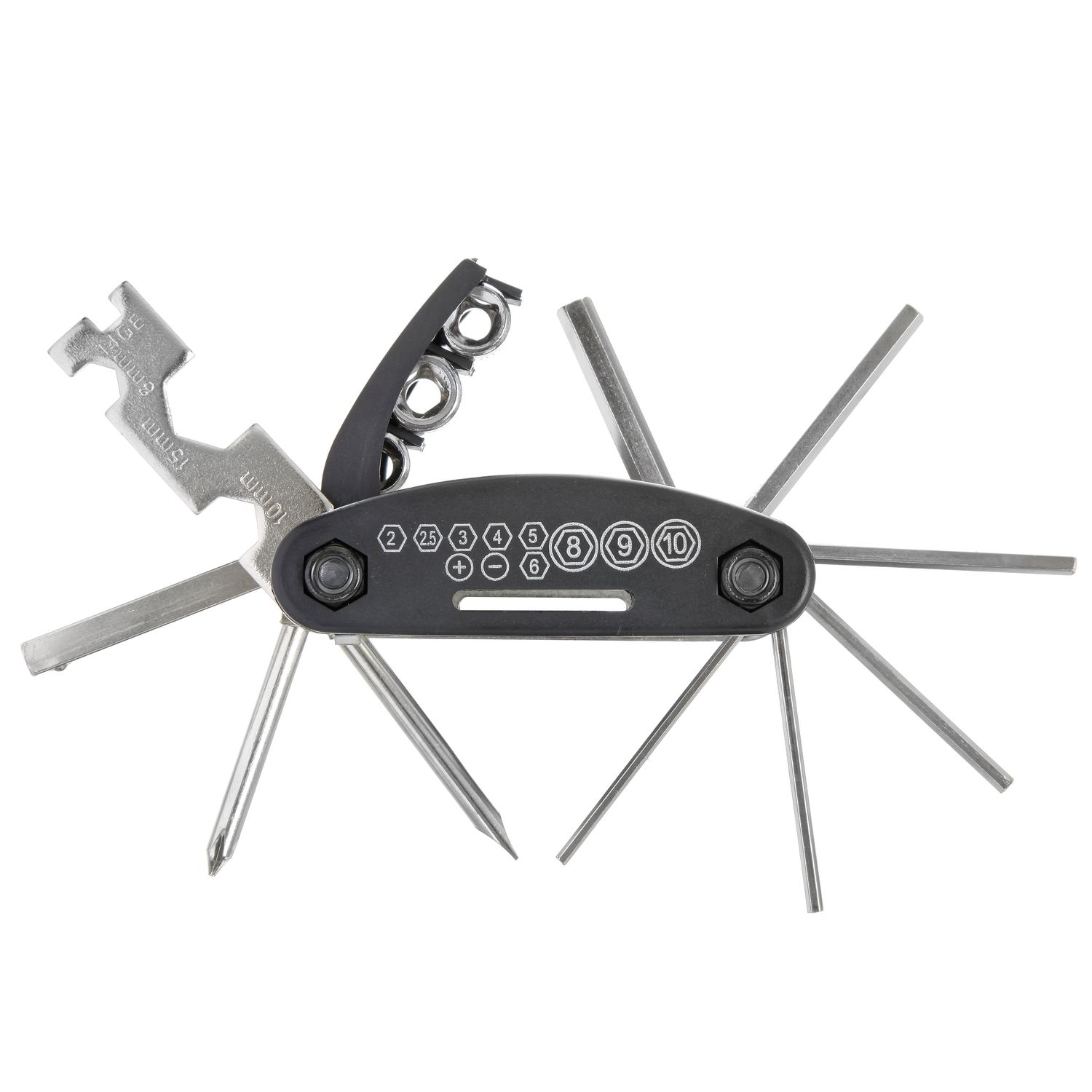 Это универсальный шестигранный ключ для велосипеда, содержит в себе все необходимые велоключи.