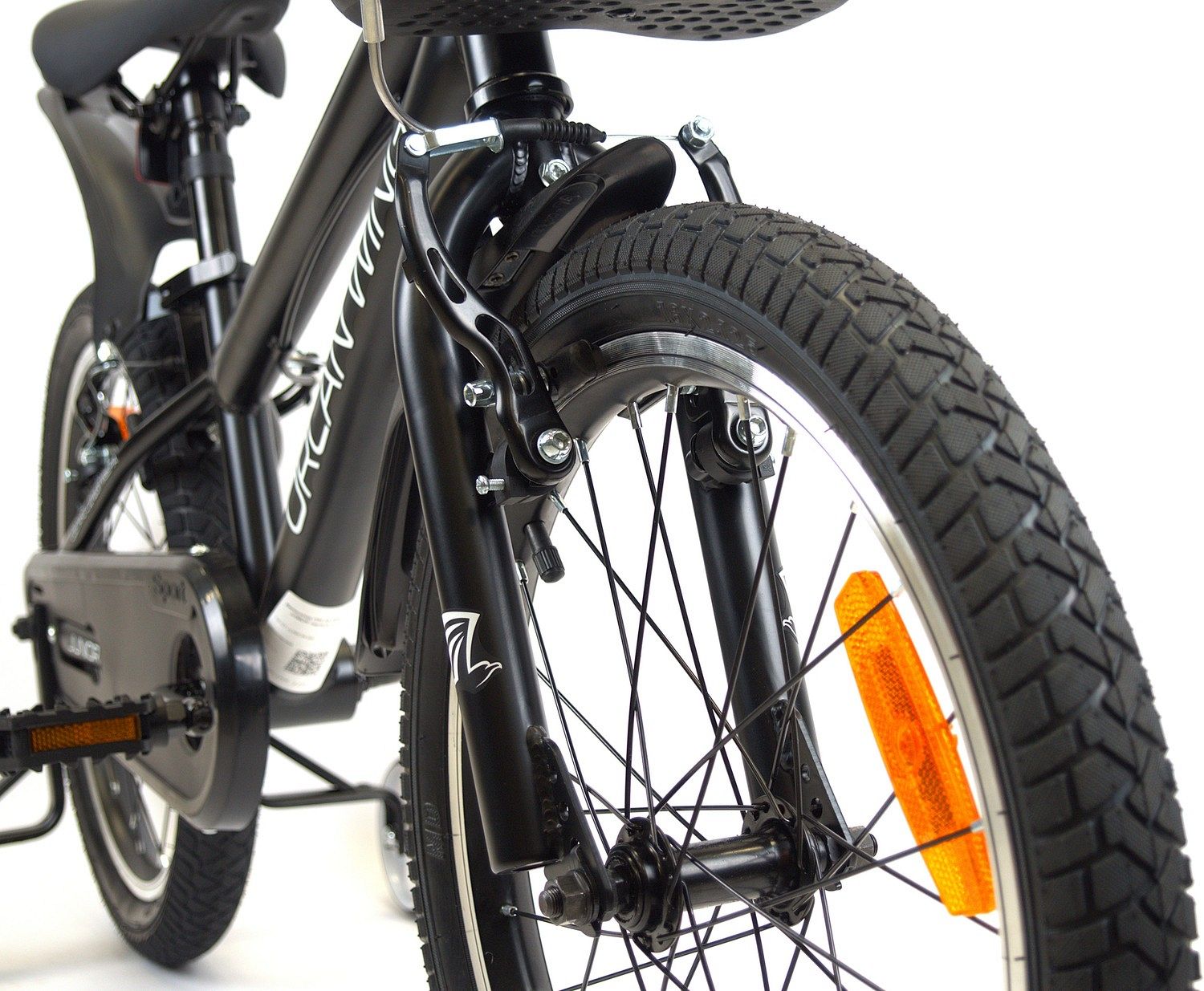 – Ободные тормоза V-Brake. Надёжная система торможения, которая помогает ребёнку контролировать скорость и уверенно останавливаться.