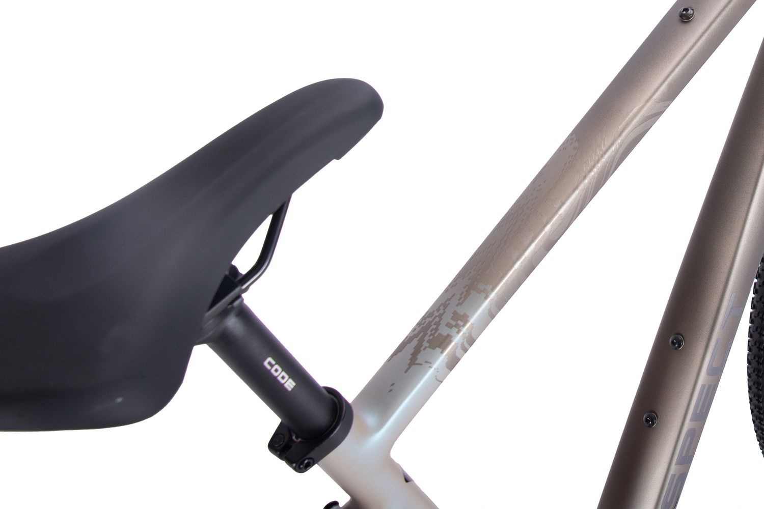 Рама велосипеда изготовлена из прочного алюминия 6061 с двойным баттингом и гидроформингом, что делает её лёгкой и долговечной. Дропауты под ось 142х12 сзади и крепление тормоза Flat Mount добавляют стабильности и надёжности конструкции. Внутренняя проводка кабелей и невидимые сварные швы придают велосипеду аккуратный и современный вид. Жёсткая вилка из карбона под ось 100х12 снижает вес велосипеда и улучшает управляемость на любых дорогах.