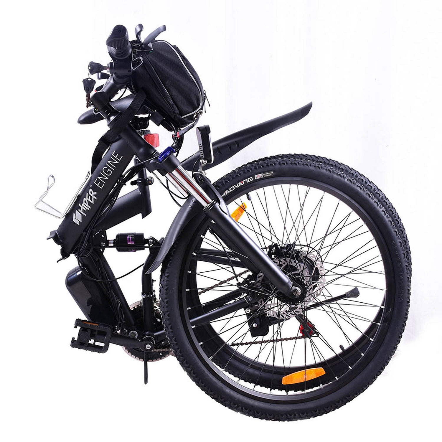 - Гидравлические амортизаторы на переднем и заднем колесе компенсируют неровности дороги и повышают комфортность езды даже в условиях сильного бездорожья. Эта особенность является наследием «горной» основы этого электробайка.