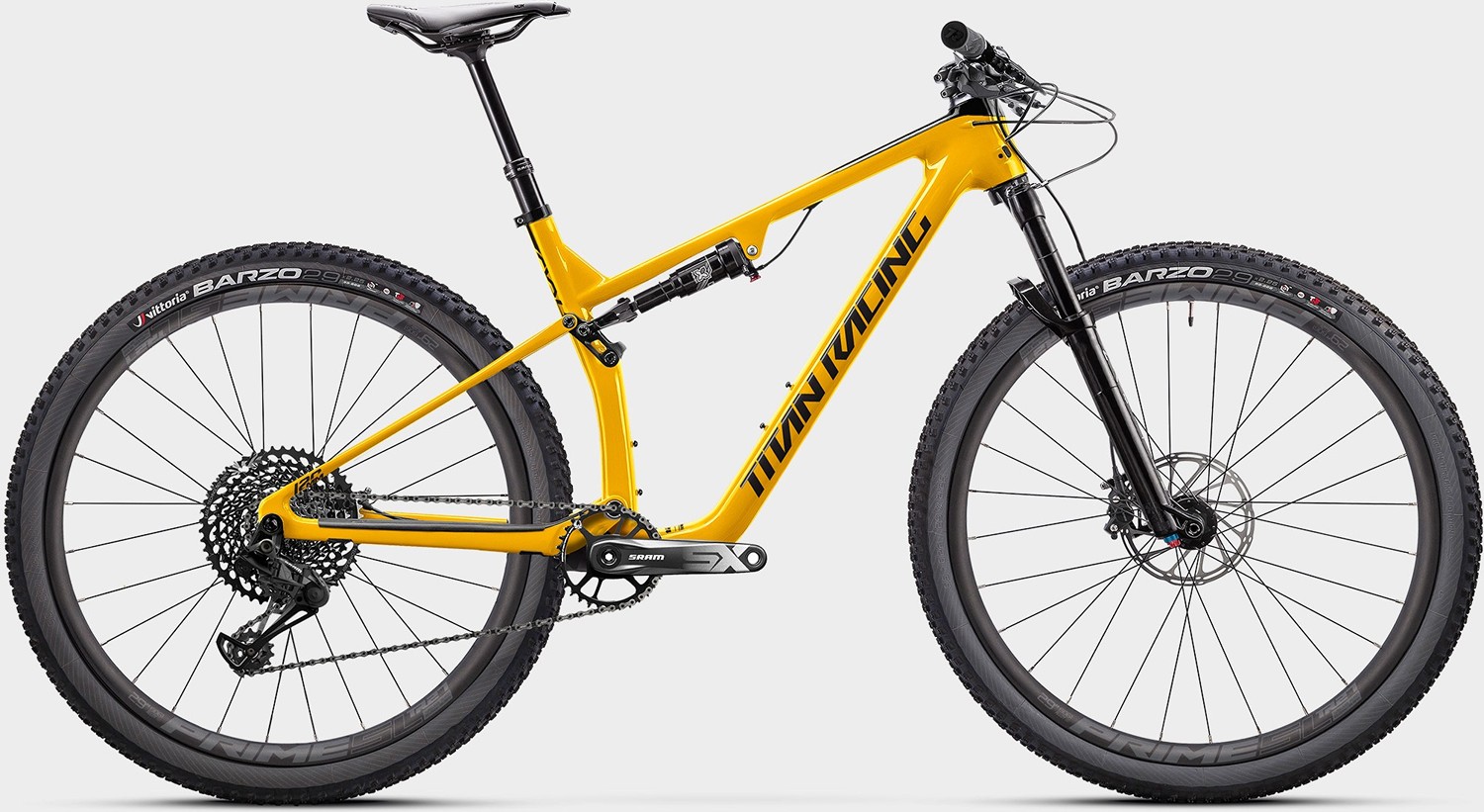 – Колёса 29″ с бескамерными ободами Prime SL 27 XC и покрышками Vittoria Barzo 2.35" с технологией Graphene 2.0 – отличное сцепление и контроль на камнях, корнях и влажной поверхности.