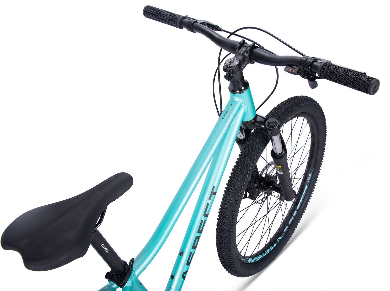 Aspect Angel оснащён лёгкой и прочной алюминиевой рамой ALU 6061 с внутренней прокладкой кабелей, что придаёт велосипеду современный и аккуратный вид. Пружинно-эластомерная вилка Zoom 565 с ходом 80 мм делает каждую поездку максимально комфортной, помогая легко преодолевать неровности на дороге.