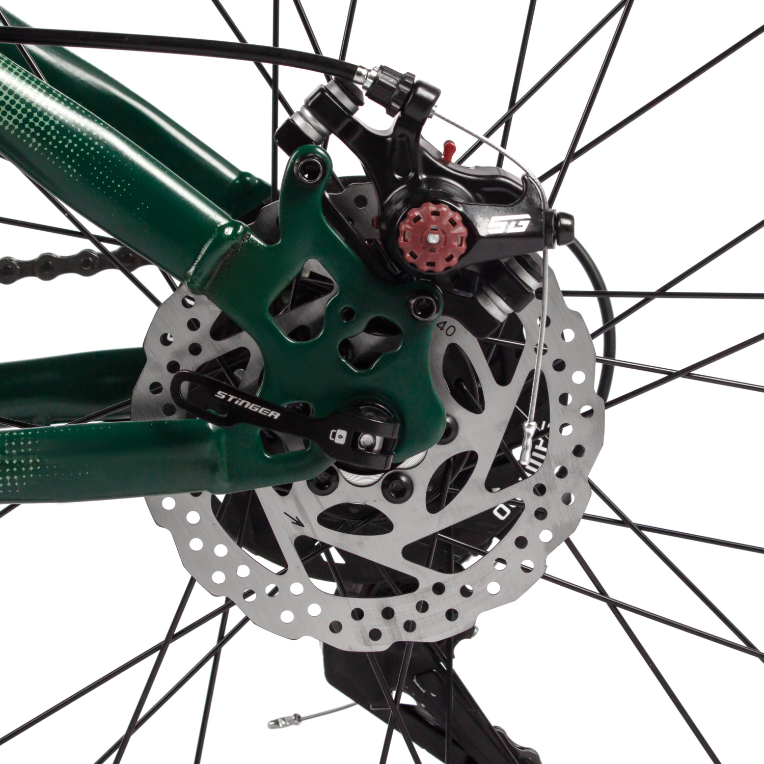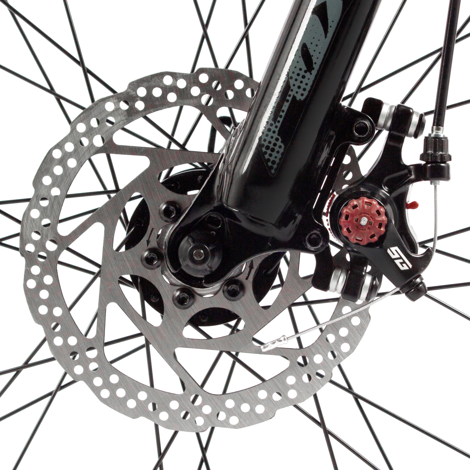 Дисковые механические тормоза STG с роторами 160/140 мм осуществляют надёжную остановку в любых ситуациях, что особенно важно для юных райдеров, стремящихся к скорости. Втулки с дисковыми стальными элементами и QR (эксцентрик) способствуют лёгкости в обслуживании и замене колёс.