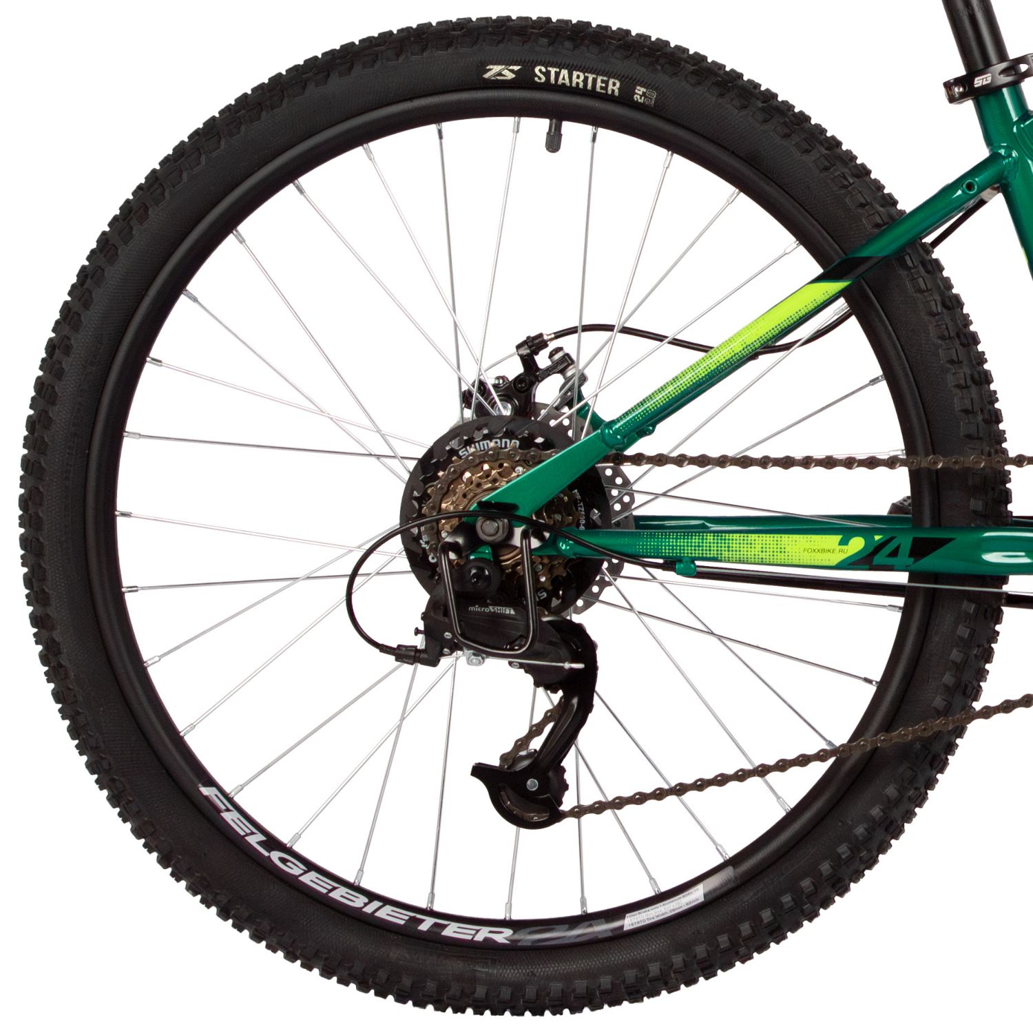 Велосипед Foxx Caiman JR 24 (2025), рама 12" (130-155 см), зеленый