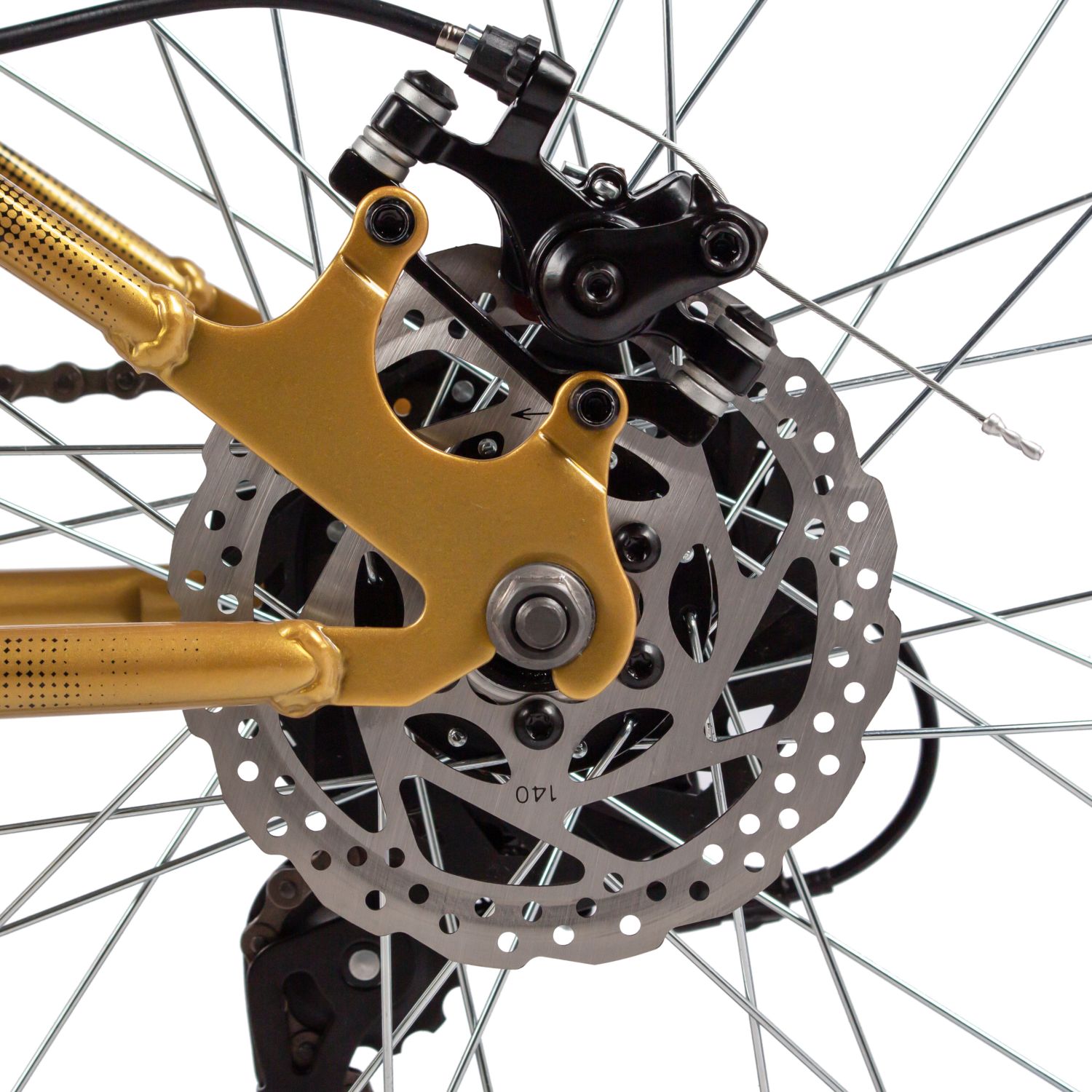 Дисковые механические тормоза STG с роторами 140 мм производят уверенную остановку, что особенно важно для безопасности юных райдеров. Втулки с дисковыми стальными элементами и QR (эксцентрик) делают процесс замены колёс простым и удобным.