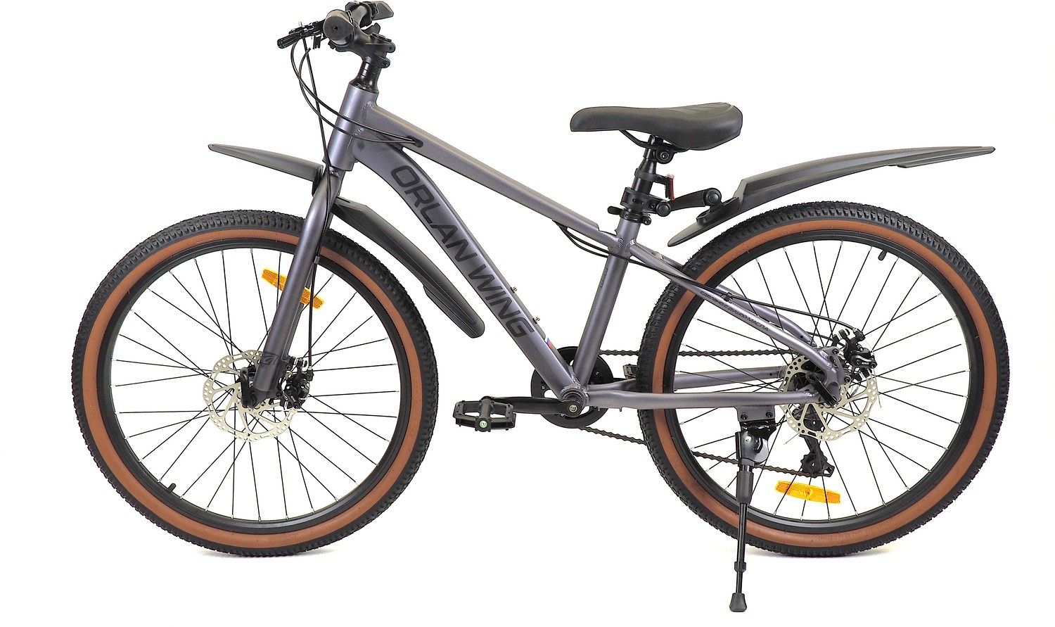 – Покрышки Compass 24"х2.125. Чёрная основа с коричневой полосой придаёт велосипеду стильный вид.