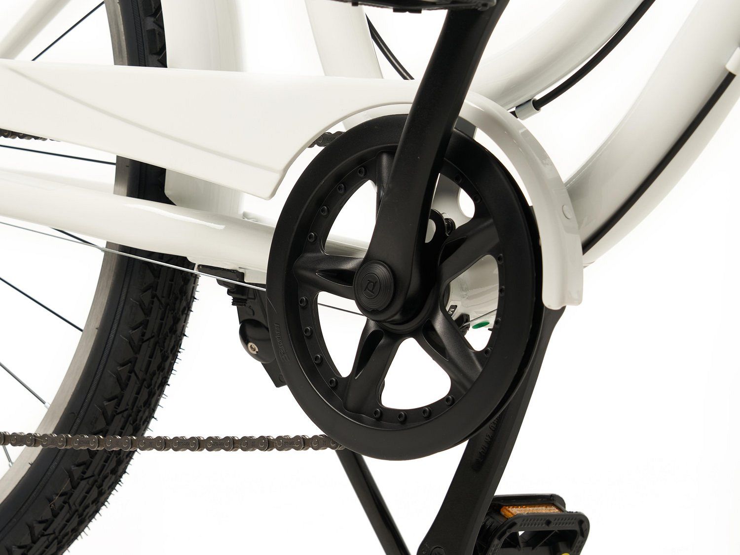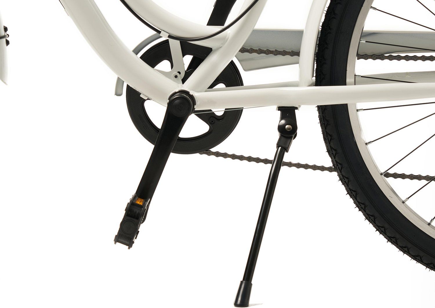 Цепь велосипеда защищена кожухом, предотвращая загрязнение одежды. Надежные ободные тормоза с регулируемыми ручками под четыре пальца и прочные 26-дюймовые колеса с покрышками Spinn Road 26x2.2" создают безопасность и стабильность на любой дороге.
