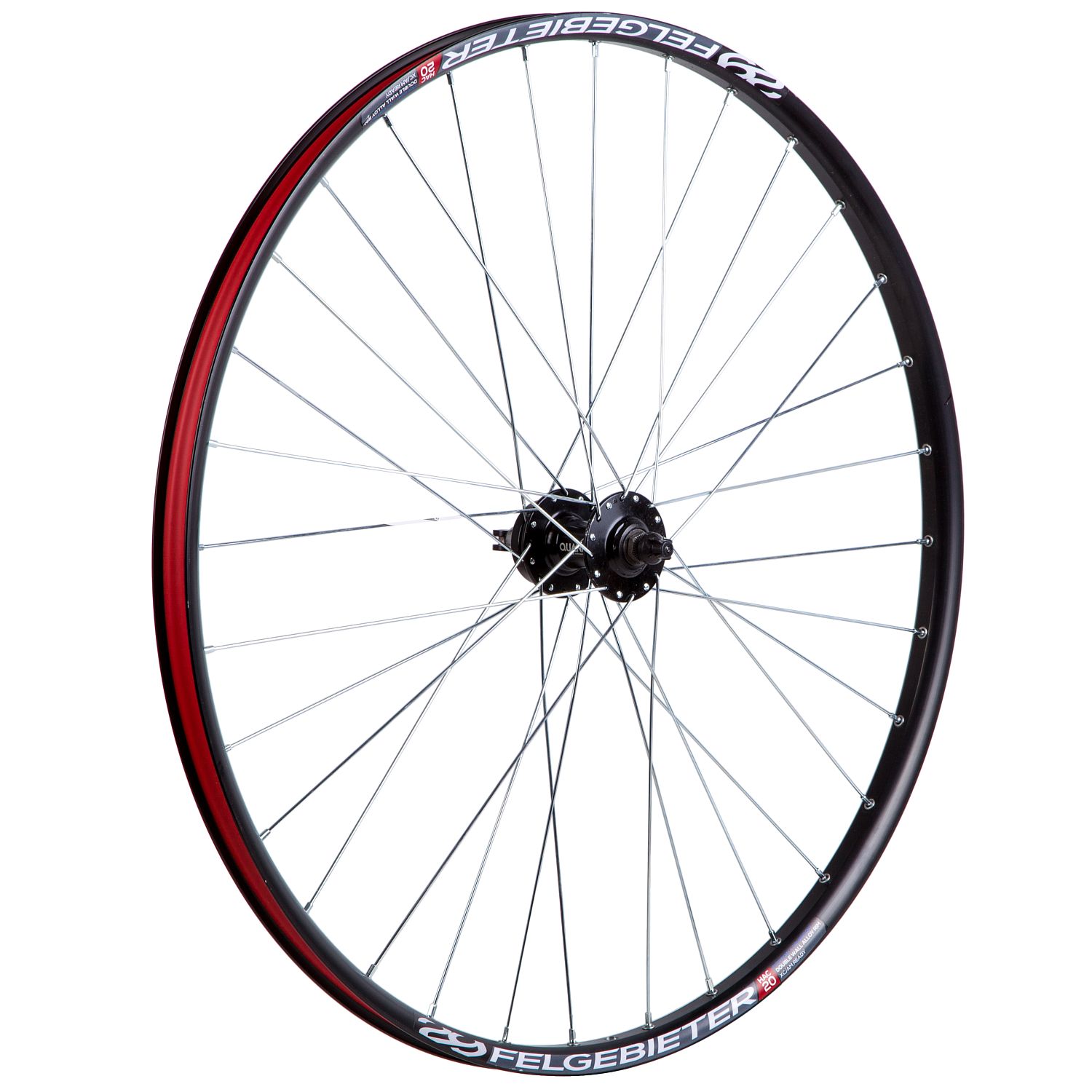Переднее колесо 29 дюймов. Двойной алюминиевый обод на 32 спицы. Алюминиевая втулка с насыпными подшипниками, крепление на эксцентрик.