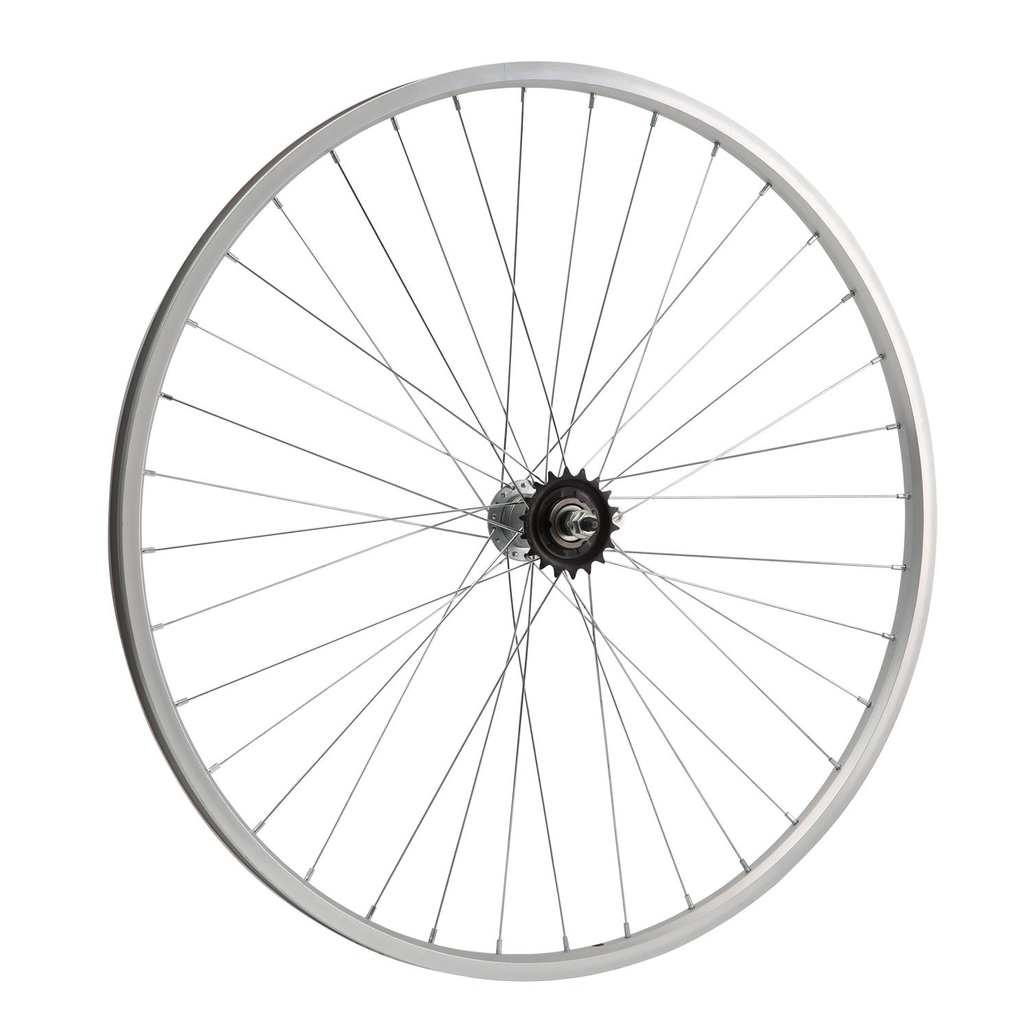 Колесо 28" заднее в сборе(без резины) с одинарным алюминиевым ободом на 36 спиц с тормозной втулкой.