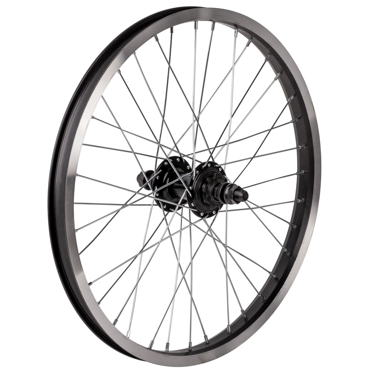 Колесо заднее 20" для BMX, двойной алюм. обод 36H, алюм. втулка, ось 14х175 мм, 9Т, черный