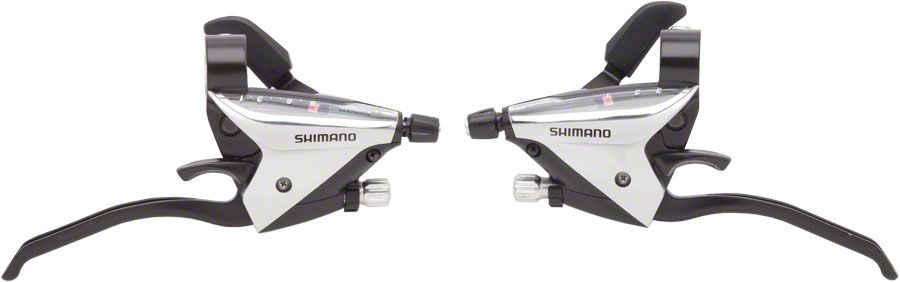 Шифтер с тормозной ручкой Shimano Tourney, EF65, лев/пр, 3x8ск, тр.+оплетк, цв. серебр., ESTEF65P8AS для велосипедa