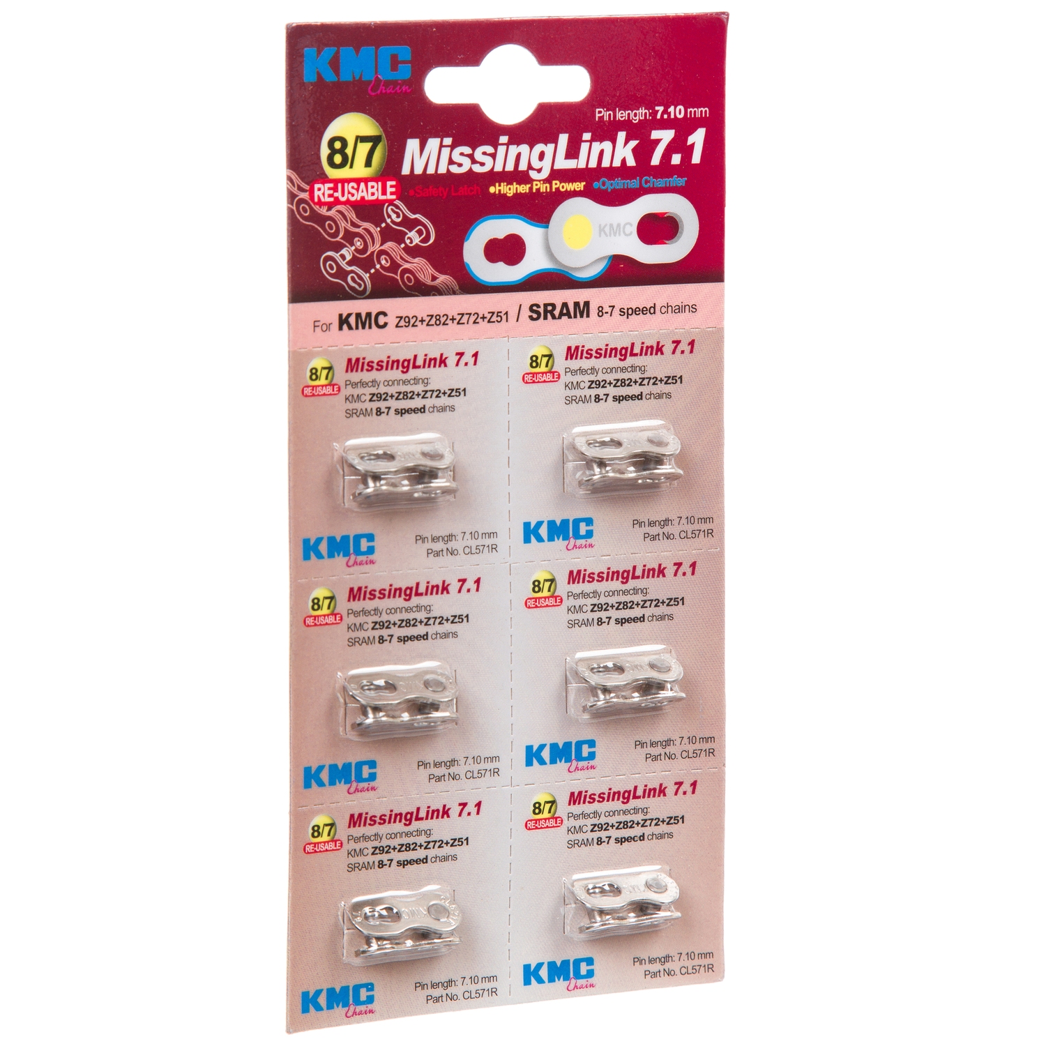 Замок цепи KMC , модель CL571R-NP для 8 скоростей ( 6 шт. на блистере)