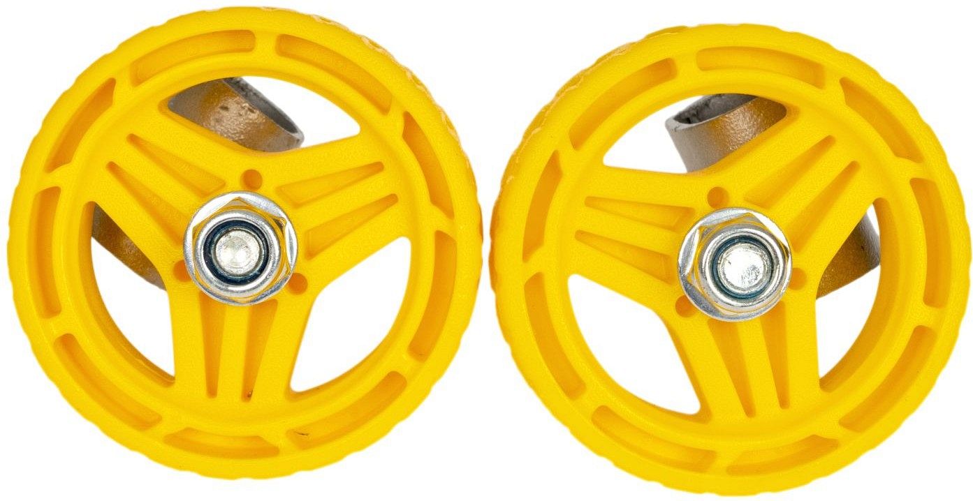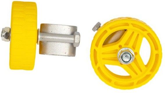 Съемные кронштейны с колесами на детские санки. Предназначены для удобного перемещения санок по твердой поверхности (асфальт, бетон и т. п. ). Подходят для плоских полозьев 40х20 мм. Комплект из 2-х штук.