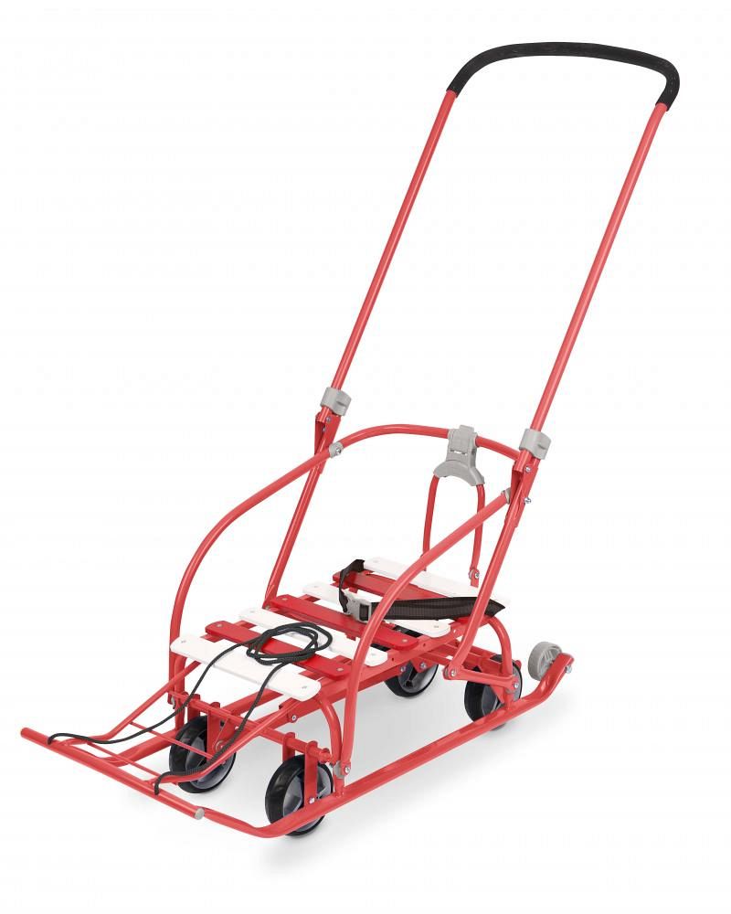 Санки детские Nikki 3 для катания и перевозки детей с механизмом выдвижных колесных шасси.