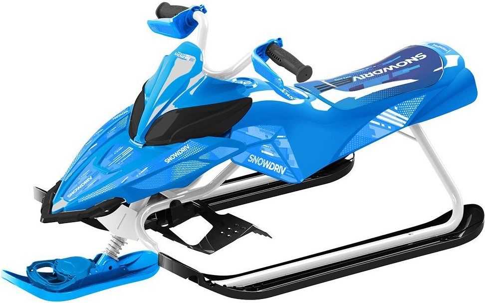 Снегокат в прогрессивном дизайне, как маленькая копия взрослого снегохода для детей от 4 до 9 лет.