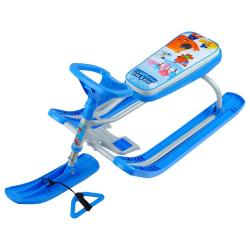 Снегокат с любимыми мультяшными героями на сидении. Снегокат предназначен для перевозки детей от 3 до 12 лет по плотному снегу или льду, катанию с горок. Имеет сварную конструкцию из стальных труб, пластмассовые лыжи и мягкое сиденье, обтянутое искусственной кожей с рисунком . Усиленный тормоз эффективен на обледенелой поверхности. Поставляется в разобранном виде.